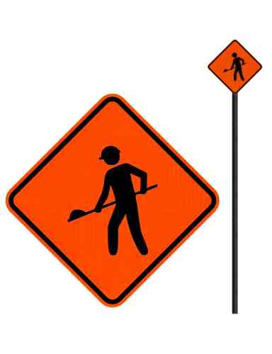 A placa obras (A-24) sinaliza o usuário da via de interferência sobre a existência, à frente, de obras que possam comprometer a circulação do trânsito e a segurança dos usuários da via.